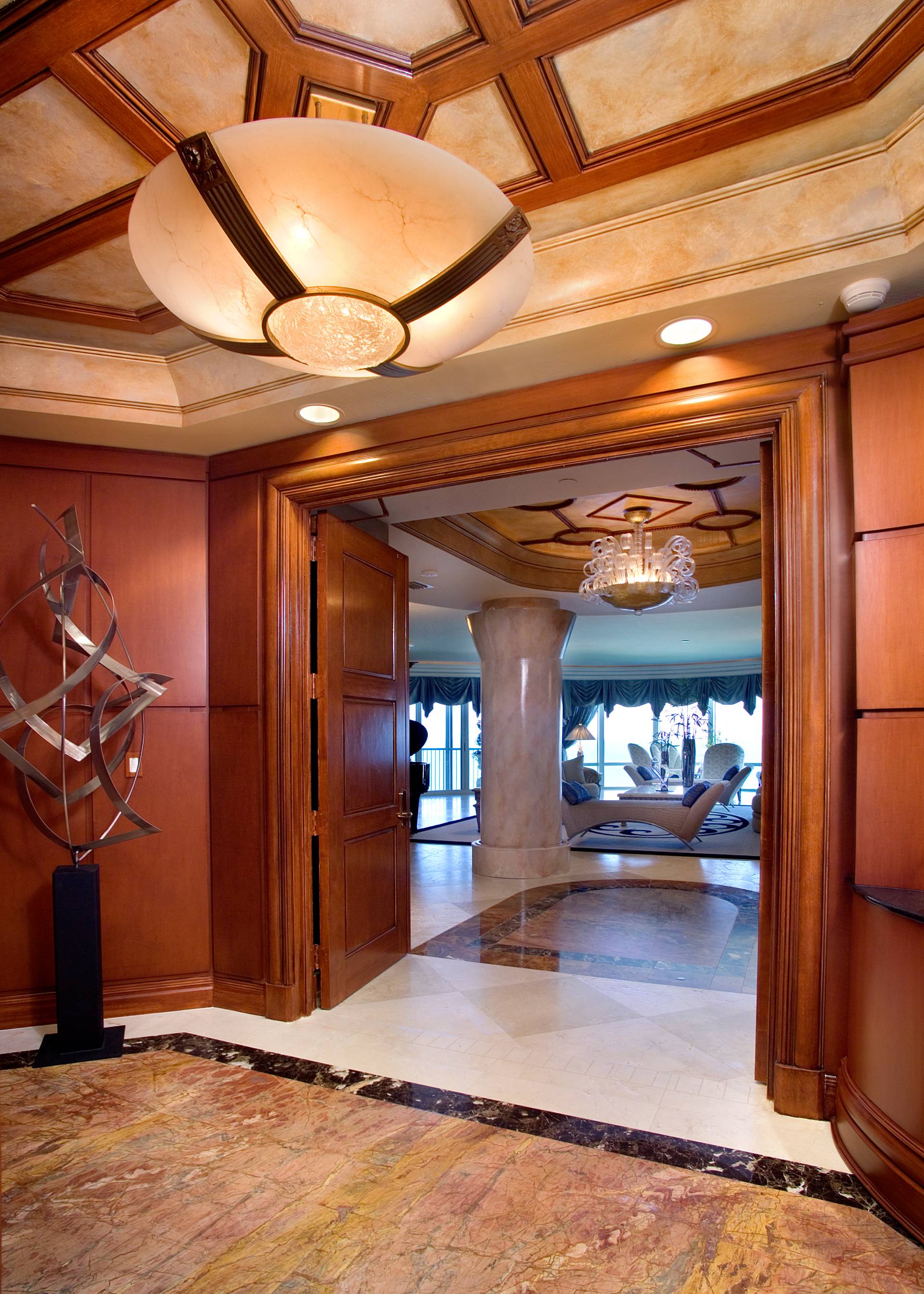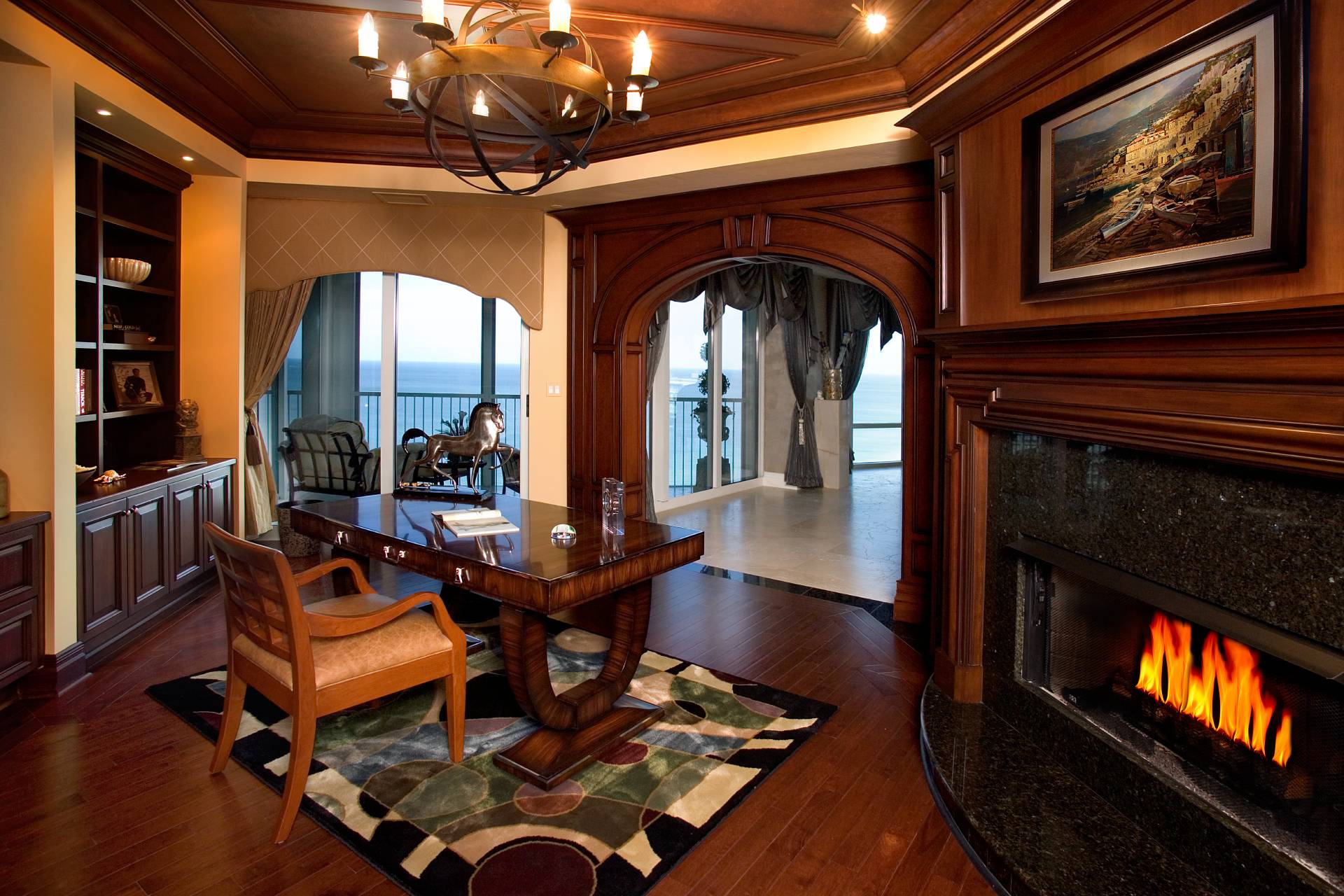 "We get involved in the project from the beginning stages when you buy your home or purchase your land. We design your reflected ceiling plans, electrical plans, walls, cabinetry, flooring, draperies, etc. We are your direct source for high quality furniture, rugs, accessories, flooring, etc. We purchase directly from the manufacturer so there is no middle man, which in return saves the client a lot of money."